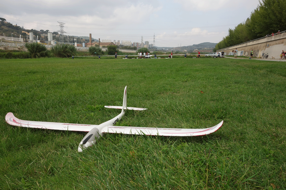 El cesped demasiado alto dificulta los despegues desde el suelo, pero la Fun Cup con flaps a tope, despega desde el suelo en un metro en cualquier clarito y los veleros salen lanzados a mano perfectamente pues es lo suyo y el aterrizaje impecable cesped.