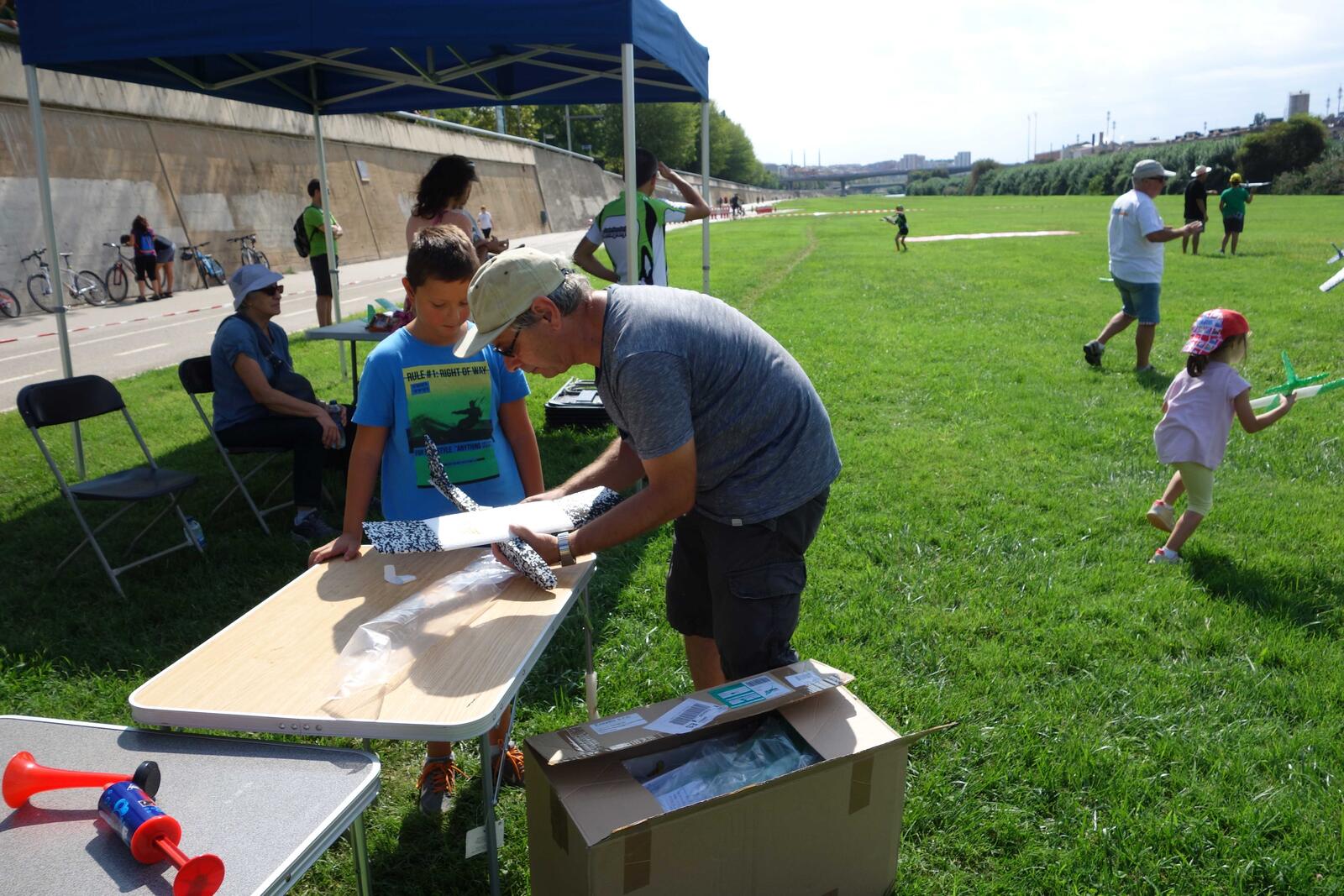 El Park Flyer de este año , con una excelente participacion de socios que se convirtieron en profesores de un buen grupo de niños , enseñando a montar y poner a punto unos pequeños veleros para el posterior concurso.